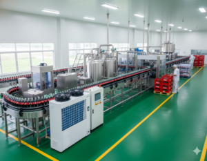 The heat pump delivers stable 65–90°C hot water to syrup lines, sterilization units, and CIP systems. - Step 4 – Waste Heat Recycling Loop: