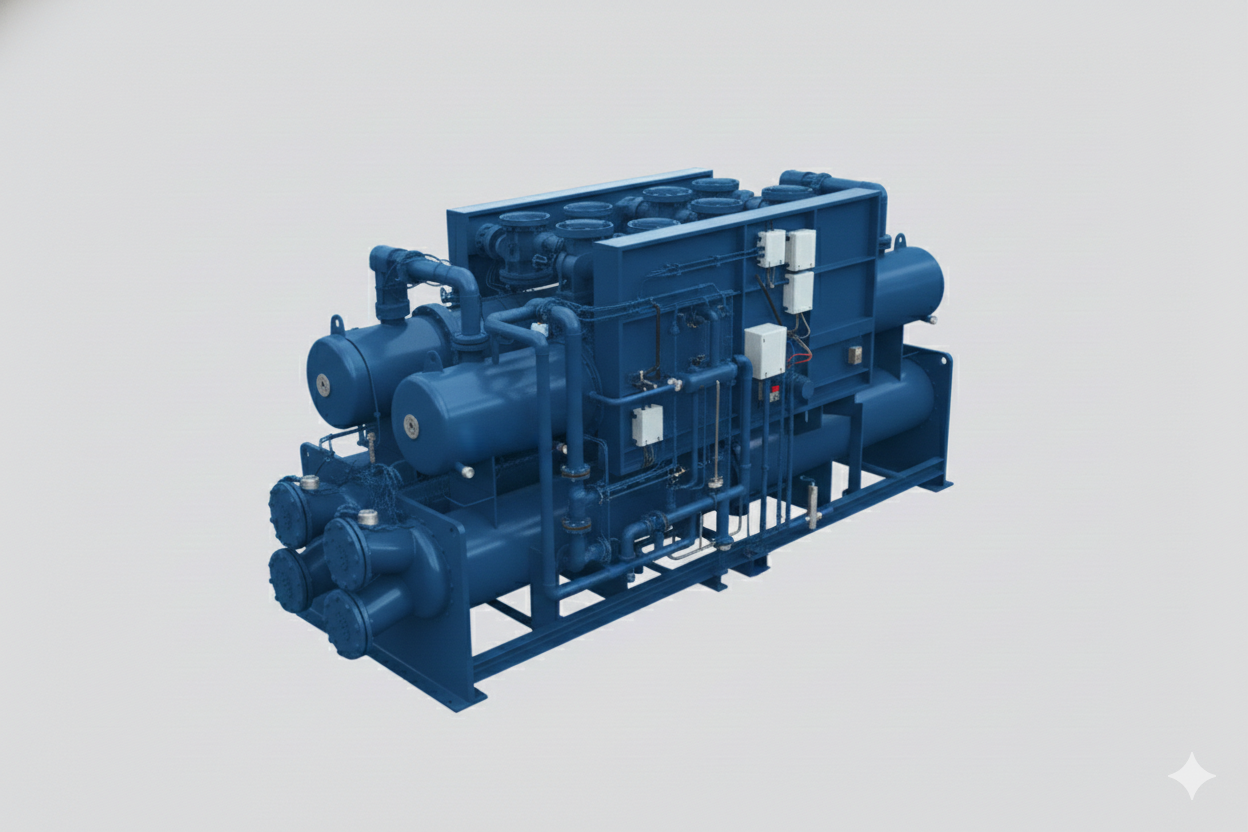 The flooded screw water chiller is a high-efficiency industrial cooling system designed for