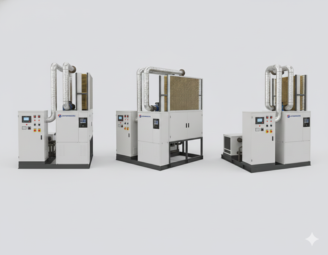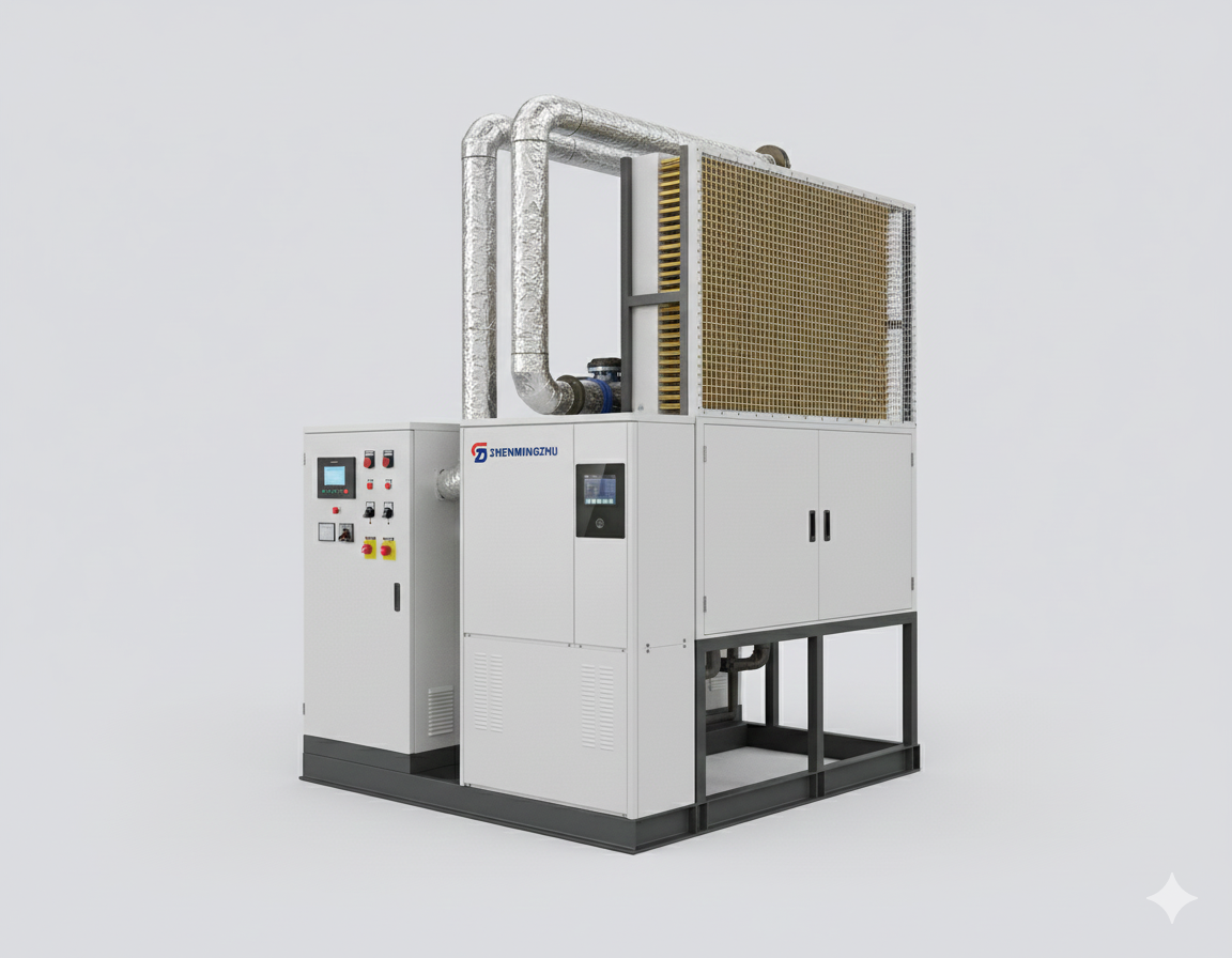The EcoCircuit Hot Air Heat Pump provides high-temperature circulating hot air up to 100°C, using only a small temperature difference of 5–10°C. It efficiently utilizes renewable energy sources such as process cooling water, waste heat, and well water to supply hot air for drying and heating without combustion. Simultaneously, the generated chilled water can be used for air conditioning or process cooling, offering a dual-purpose solution that reduces CO₂ emissions, energy consumption, and operational costs.